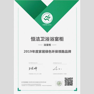 獎 項:浴室柜綠色環(huán)保領(lǐng)跑品牌——恒潔
