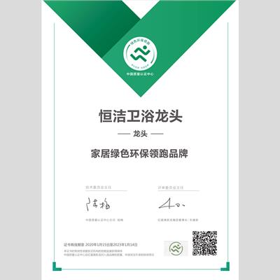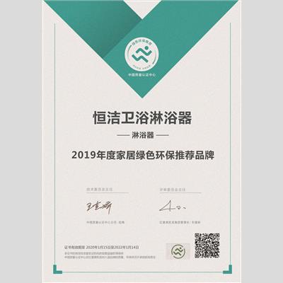 獎 項:淋浴器綠色環(huán)保推薦品牌——恒潔