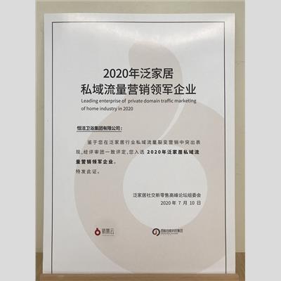 獎 項:2020泛家居私域流量營銷領(lǐng)軍企業(yè)