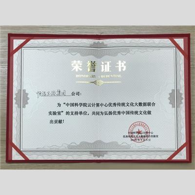 獎 項:“中國科學(xué)院云計算中心優(yōu)秀傳統(tǒng)文化大數(shù)據(jù)聯(lián)合實驗室”支持單位——恒潔