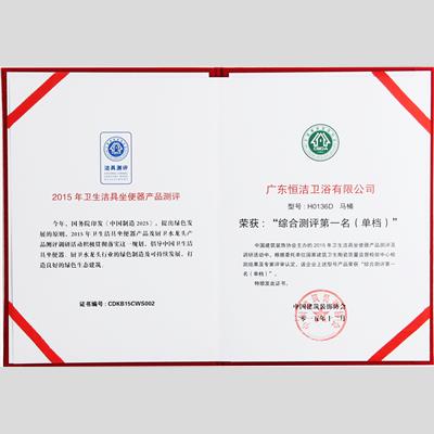 獎(jiǎng) 項(xiàng):2015年衛(wèi)生潔具坐便器產(chǎn)品測(cè)評(píng) 綜合測(cè)評(píng)第一名(單檔)【H0136D】
