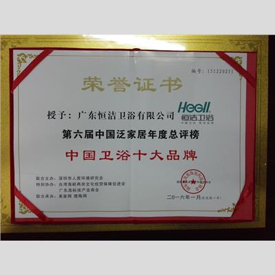 獎(jiǎng) 項(xiàng):第六屆中國(guó)泛家居年度總評(píng)榜-中國(guó)衛(wèi)浴十大品牌
