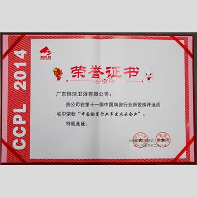 獎 項:第十一屆中國陶瓷行業新銳榜 中國陶瓷行業年度風云企業