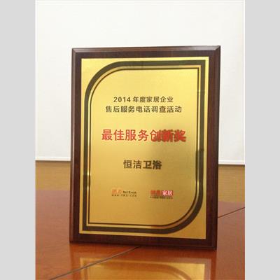 獎(jiǎng) 項(xiàng):2014年度家居企業(yè)售后服務(wù)電話調(diào)查活動(dòng) 最佳服務(wù)創(chuàng)新獎(jiǎng) 恒潔衛(wèi)浴