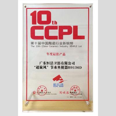 獎(jiǎng) 項(xiàng):第十屆中國陶瓷行業(yè)新銳榜“年度最佳產(chǎn)品”--“超旋風(fēng)”超節(jié)水坐便器H0136D