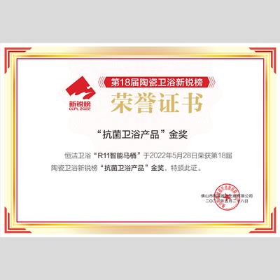 獎 項:抗菌衛(wèi)浴產(chǎn)品金獎-恒潔R11智能一體機