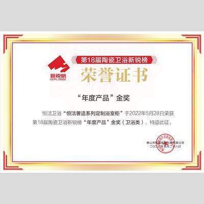 獎 項:年度產(chǎn)品-衛(wèi)浴類金獎-恒潔奢適系列定制浴室柜