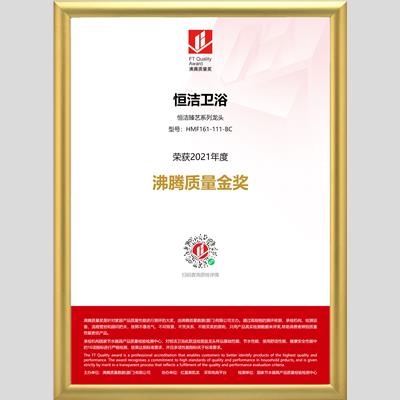 獎 項:沸騰質量金獎-恒潔臻貴系列龍頭HMF128-111