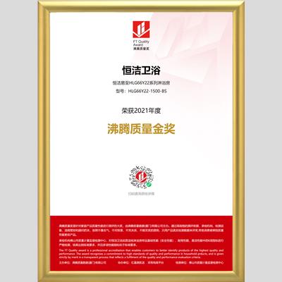 獎 項:沸騰質量金獎-恒潔易至HLG66Y22系列淋浴房HLG66Y22-1500-BS