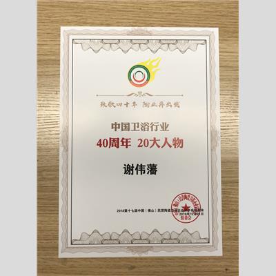 獎 項:中國衛(wèi)浴行業(yè)四十年 20大人物
