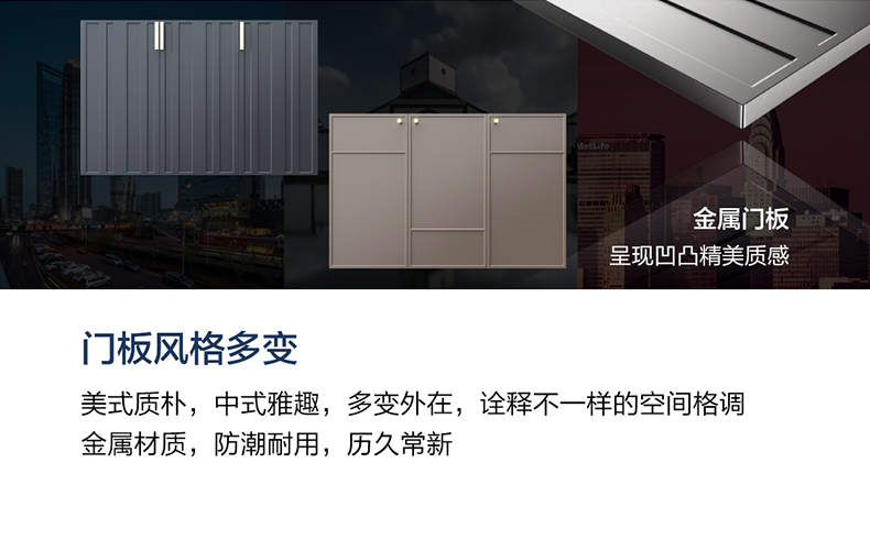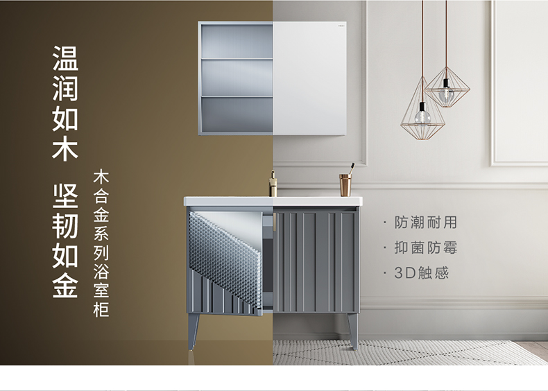 - 木合金柜體,防水防潮,隨心安放;表面覆膜工藝,3D觸感, 溫潤(rùn)如木;