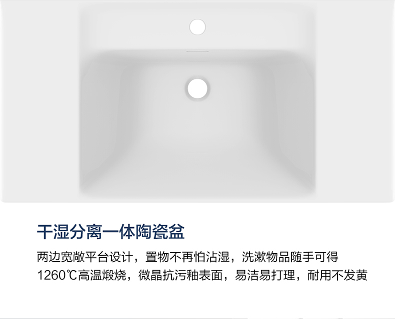 - 干濕分離一體盆,置物不再怕沾濕;兩邊寬敞平臺(tái)設(shè)計(jì),洗漱物品隨手可得