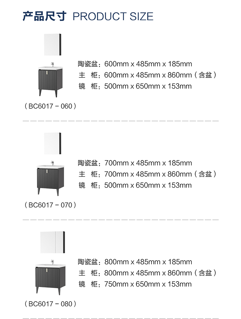- 主柜尺寸:800×485×860mm(含盆)