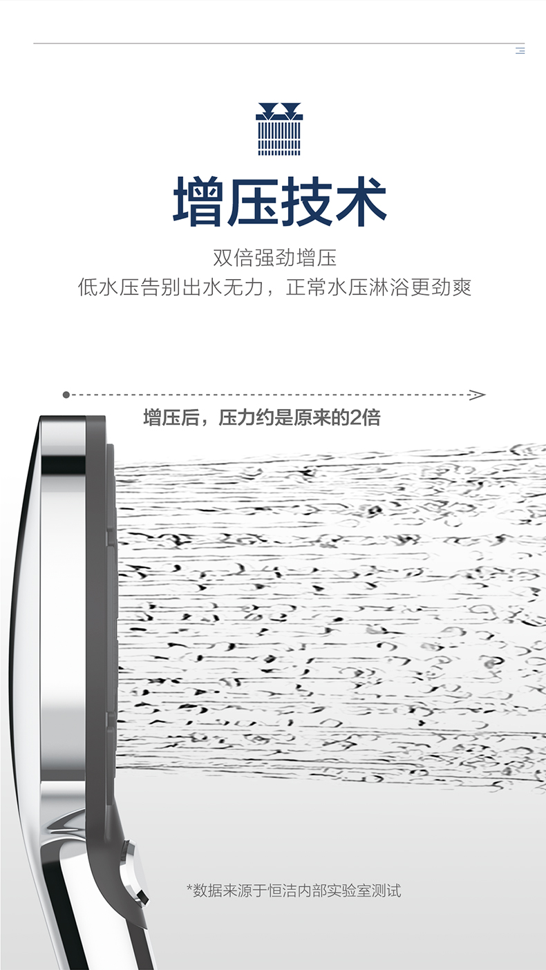 - 恒潔增壓技術(shù),0.45mm極致細孔設(shè)計,出水密集柔和