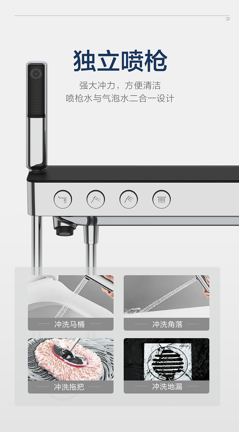 - 獨立噴槍,澎湃水力,輕松清潔