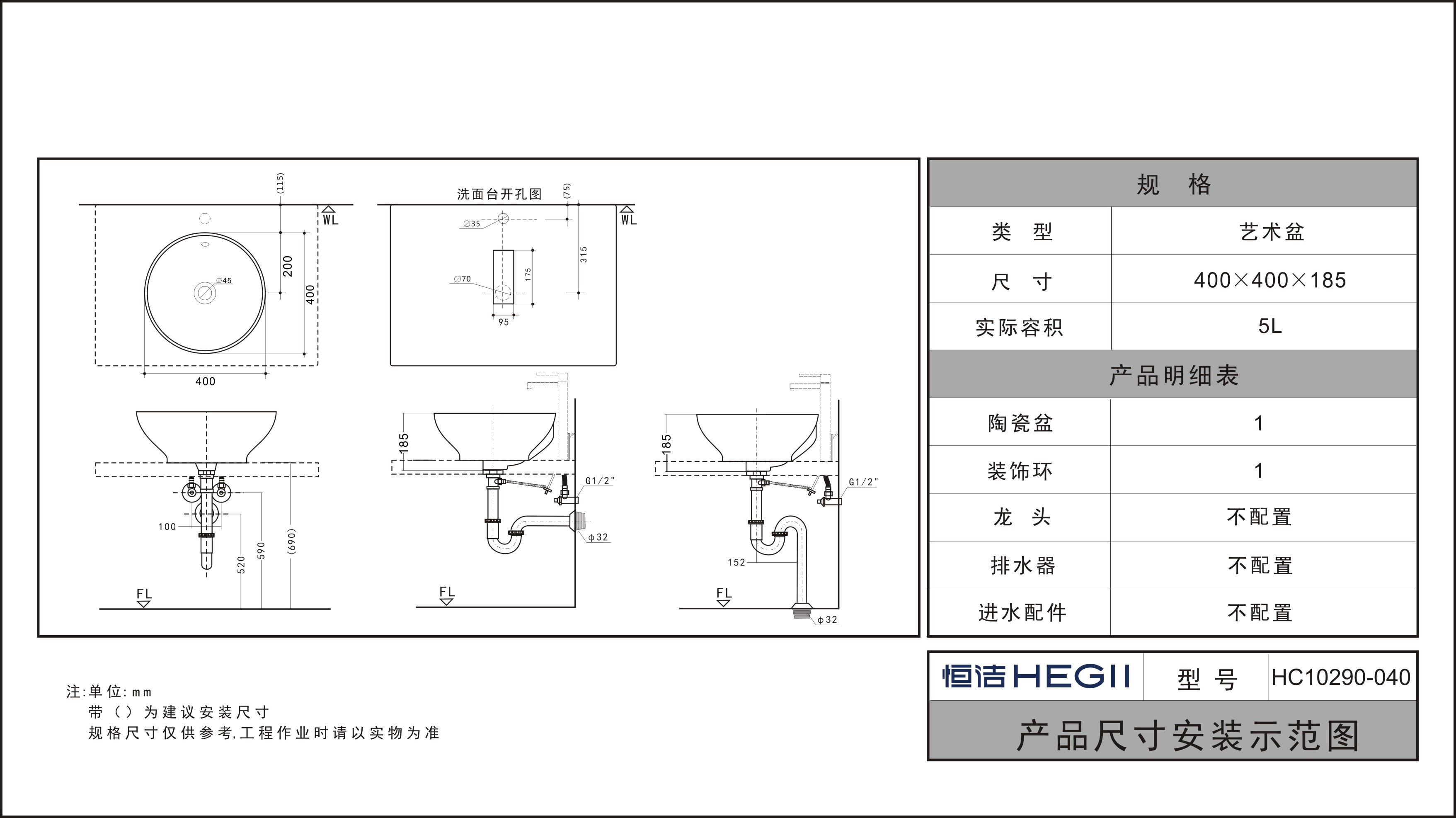 尺寸:400x400x185mm