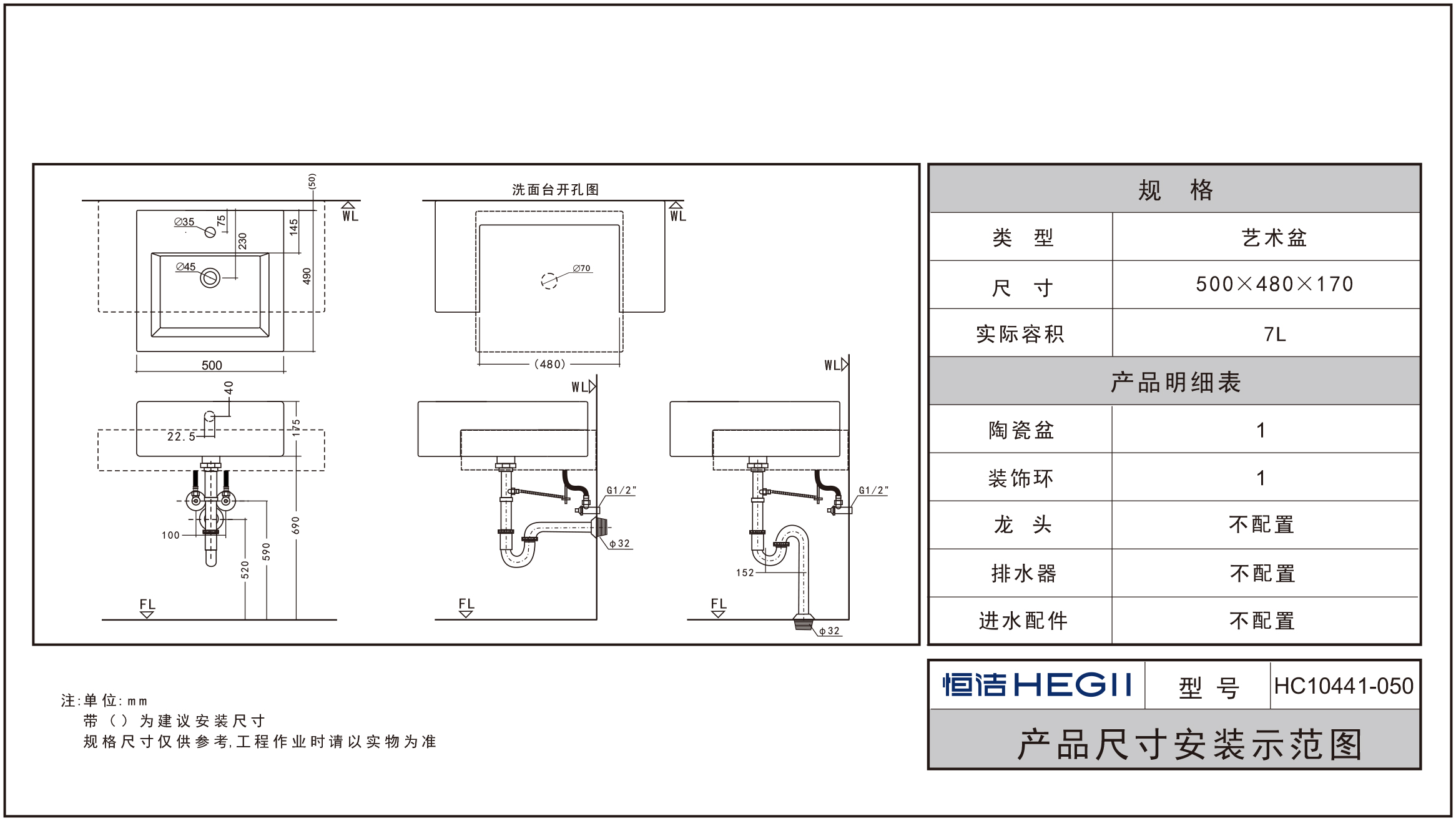 HC10441-050方形半嵌入式藝術(shù)盆